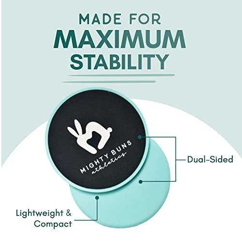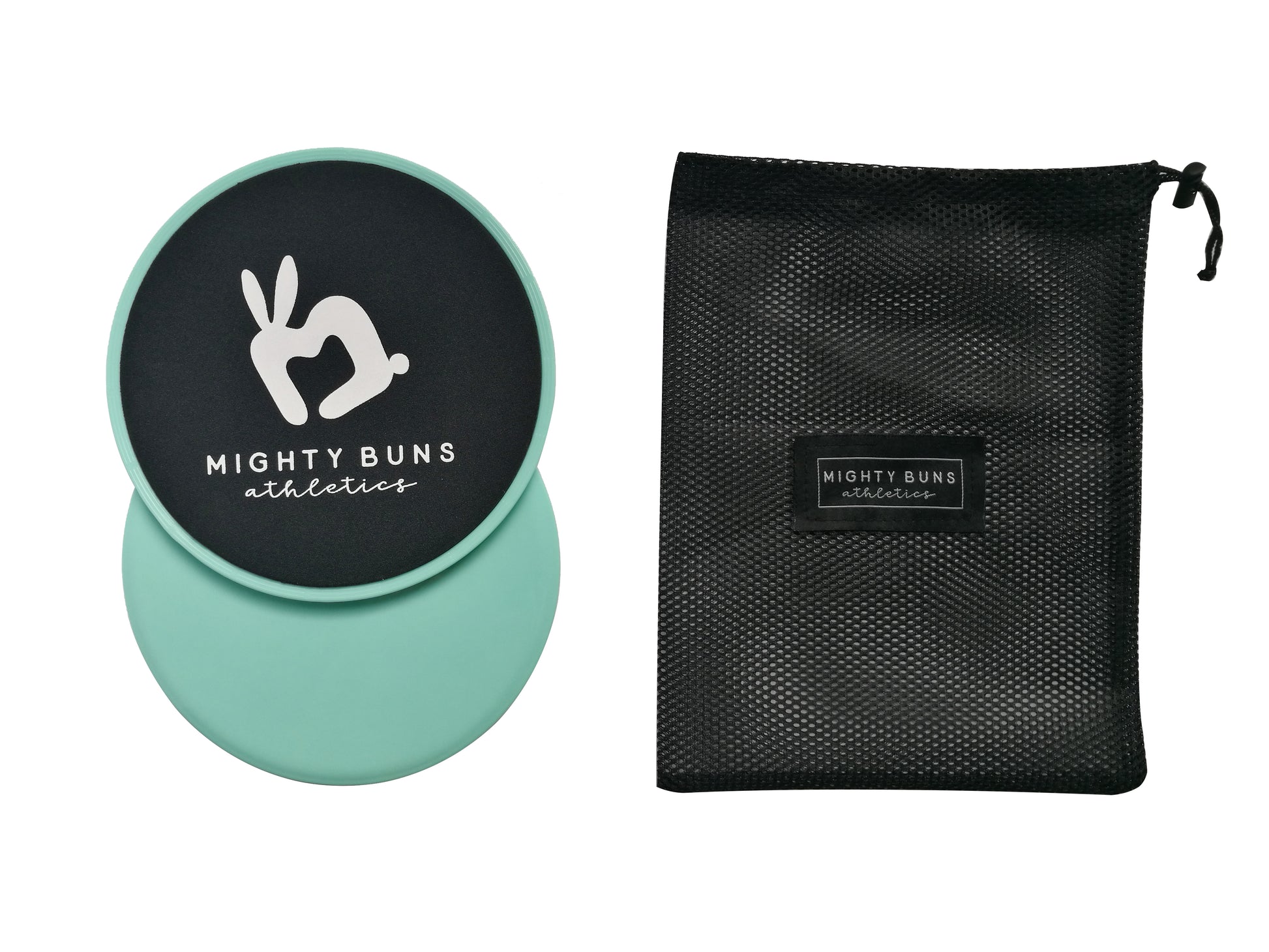 Mighty Buns - Core Sliders, Exercise Sliders for Improved Stability, Dual-Sided Workout Sliders Disc, Compact Sliders for Working Out With Mesh Bag, Mint, Set of 2